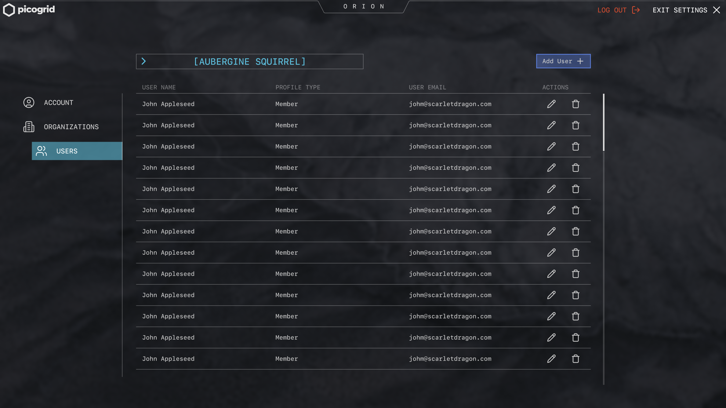 Users with user management permissions in an organization can see all users in the same organization. If they have write access, they will also be able to add and remove users.