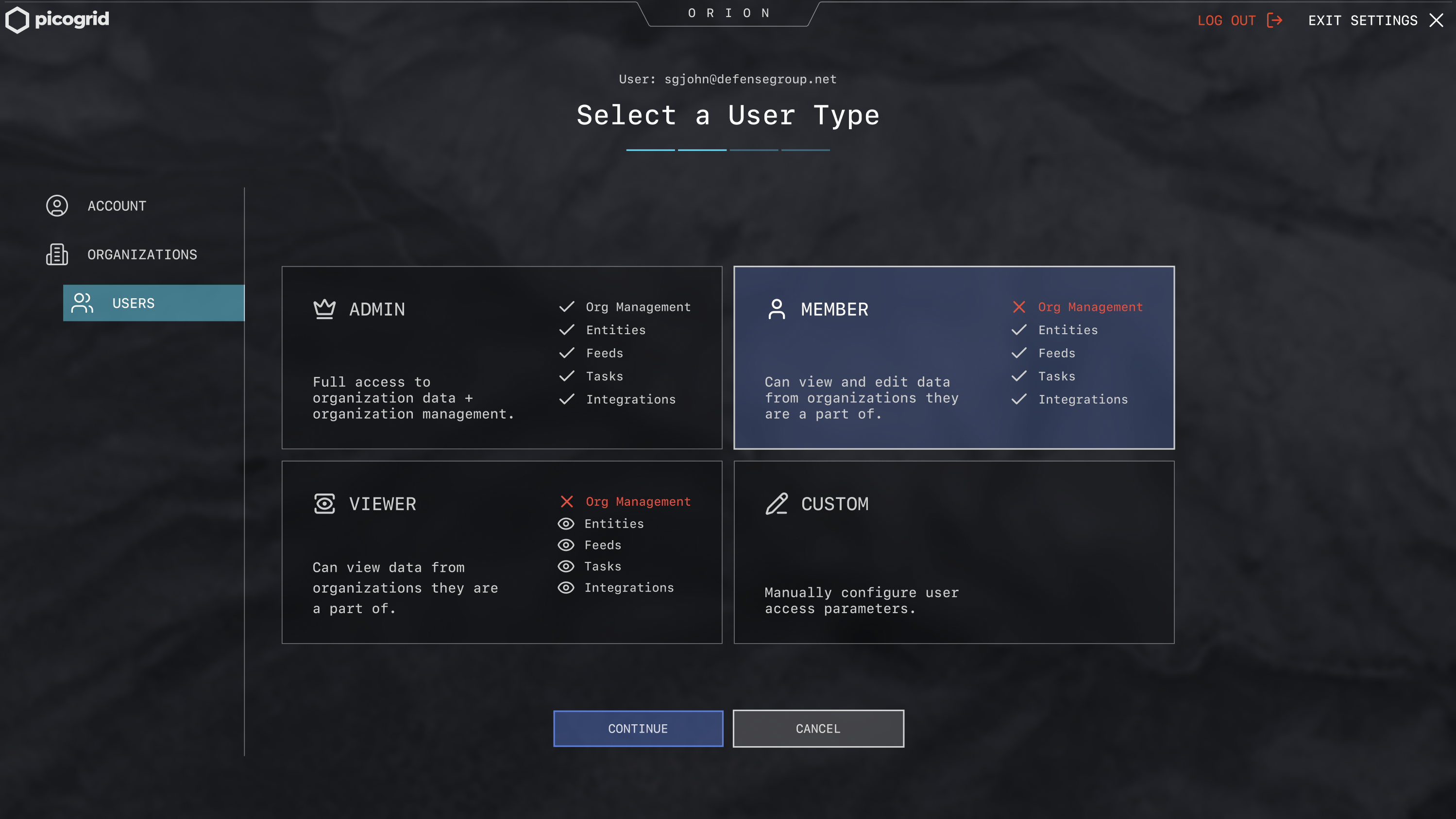 When adding users, Orion offers default user types. We recommend authorizing the least amount of privilege necessary for the user to perform necessary tasks. If you need more granular control over the user's permissions, you can select the "custom" option and configure all the permissions manually.